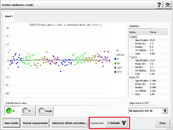 Es ist nun möglich, das Sigma-Level im Dialog Ergebnisse der Maschinen-Überprüfung über die