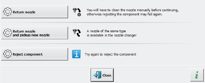 Der Bestückprozess wird angehalten, bis auf die detaillierte Fehlermeldung reagiert wurde.