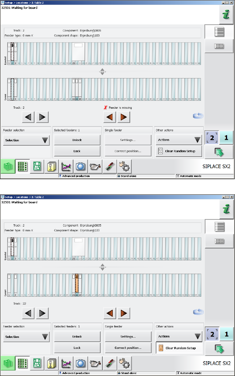 Beim Einsatz der Funktion SIPLACE Random Setup, wird die Originalrüstung mit der Zeit auf den