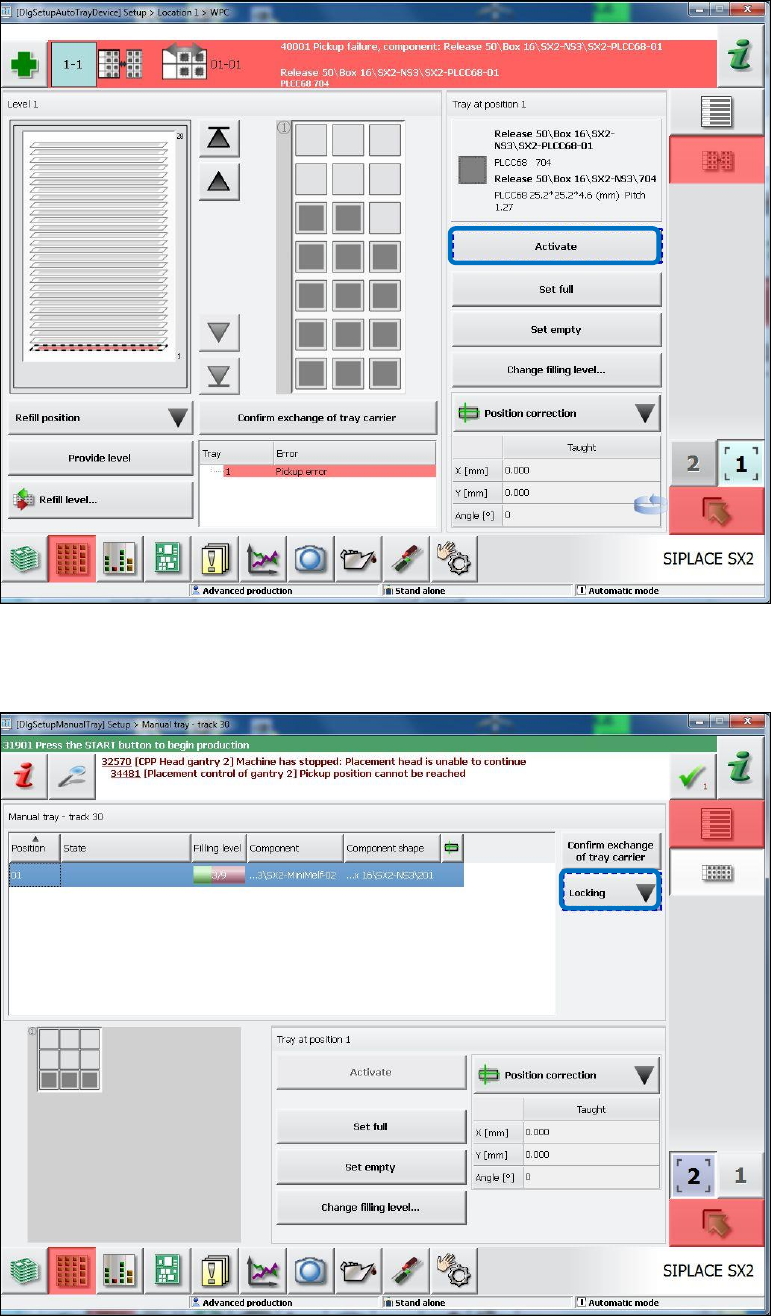 – Die Schaltfläche Aktivieren ist neu und ist aktiviert, wenn der Bediener das ausgewählte Tray