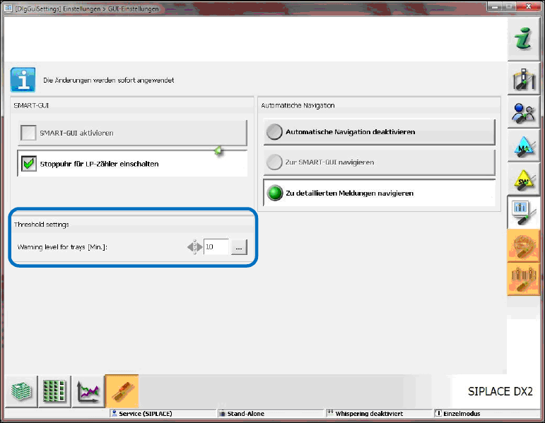 als Schwellwert für die Meldeleuchten machen für Trays in MTC und WPC, die nicht vom Setup