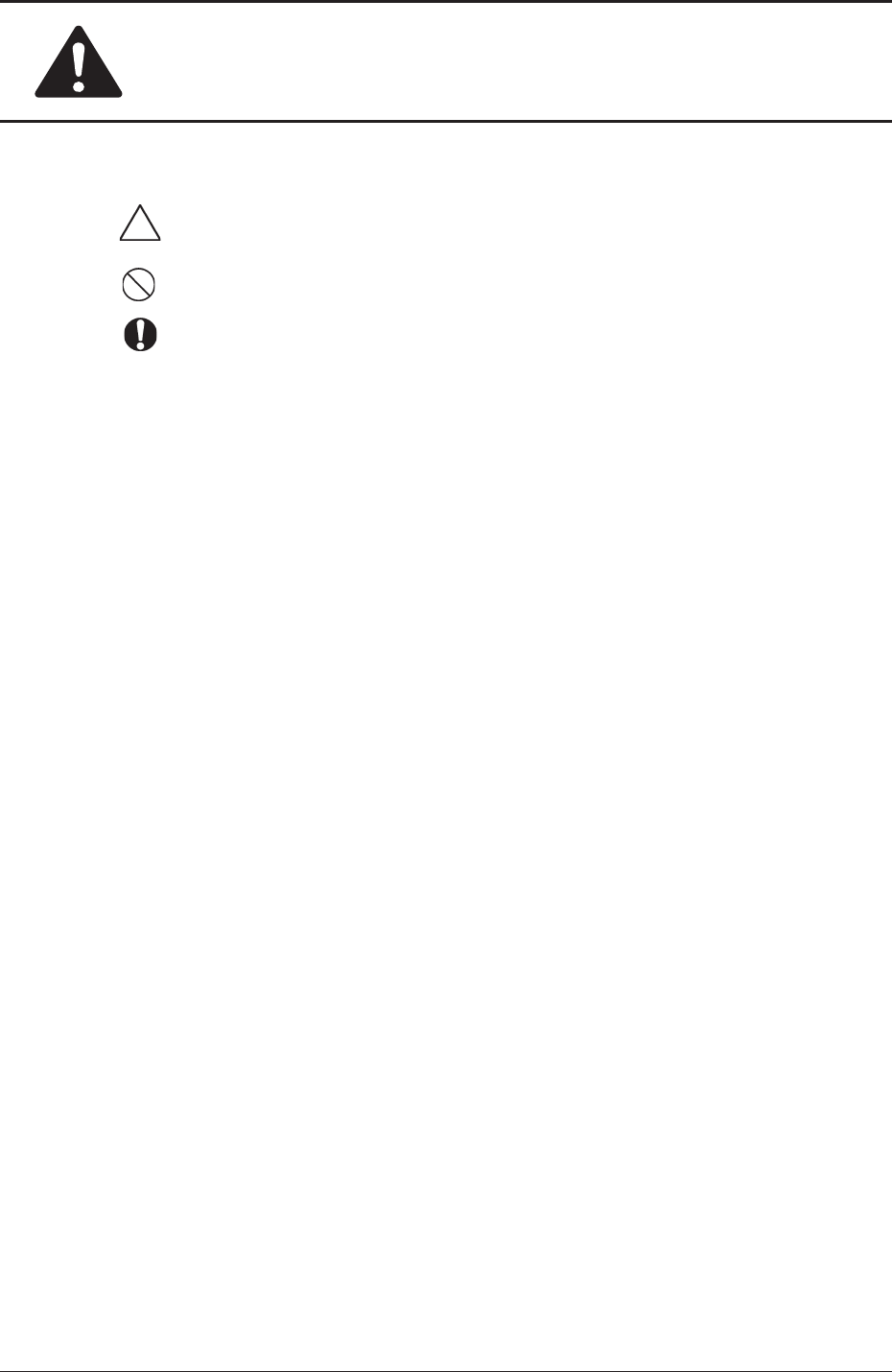 安全にお取扱いいただくために 10 0710-001 • 絵表示について : この記号は、注意(危険および警告を含む)を促す内容であることを 示すものです。 : この記号は、禁止の行為であることを示すものです。 : この記号は、行為を強制したり指示する内容を示すものです。