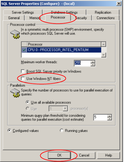 → Select the tab Processor. Deactivate the option Use Windows NT fibers.