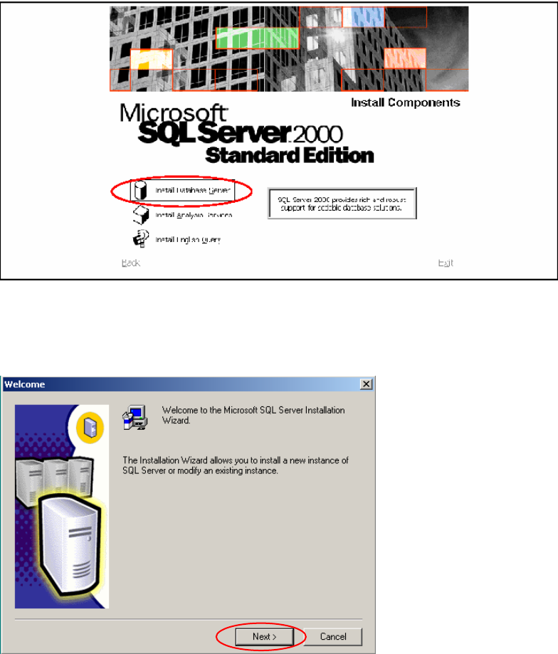 Installation of SQL Server 2000 Edition 10/2005 US The following dialog appea rs: 2 Fig. 3-2: The "Setup SQL Server 2000" dialog box → Click Install Database Server . The following dialog appea rs: 2 Fig. 3-3: …