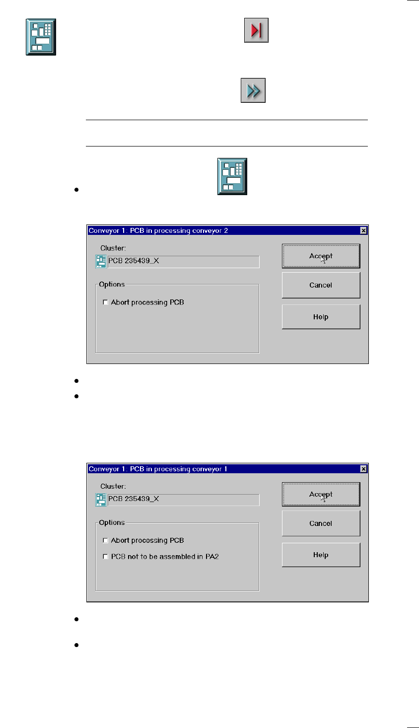 If the PCB is located on processing conveyor 2, the following dialog box is