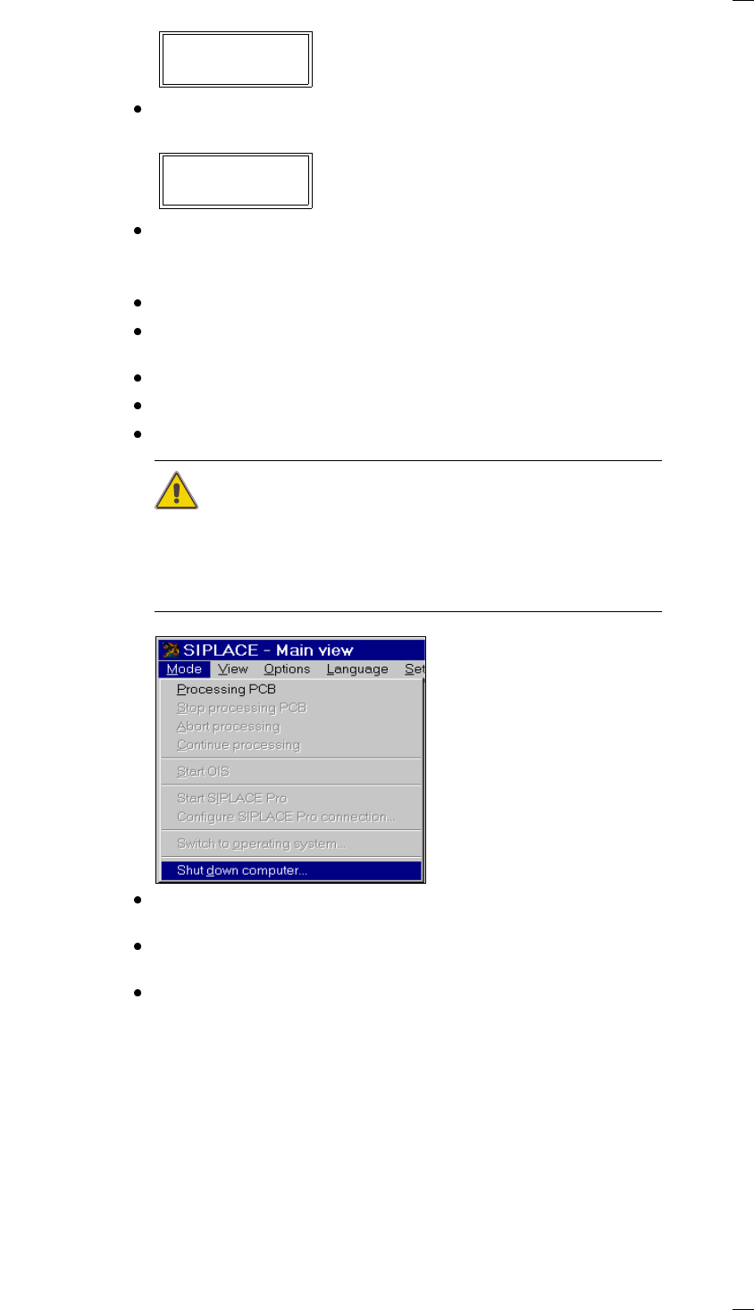 a Computer start-up phase, Pause processing, Continue processing, Abort
