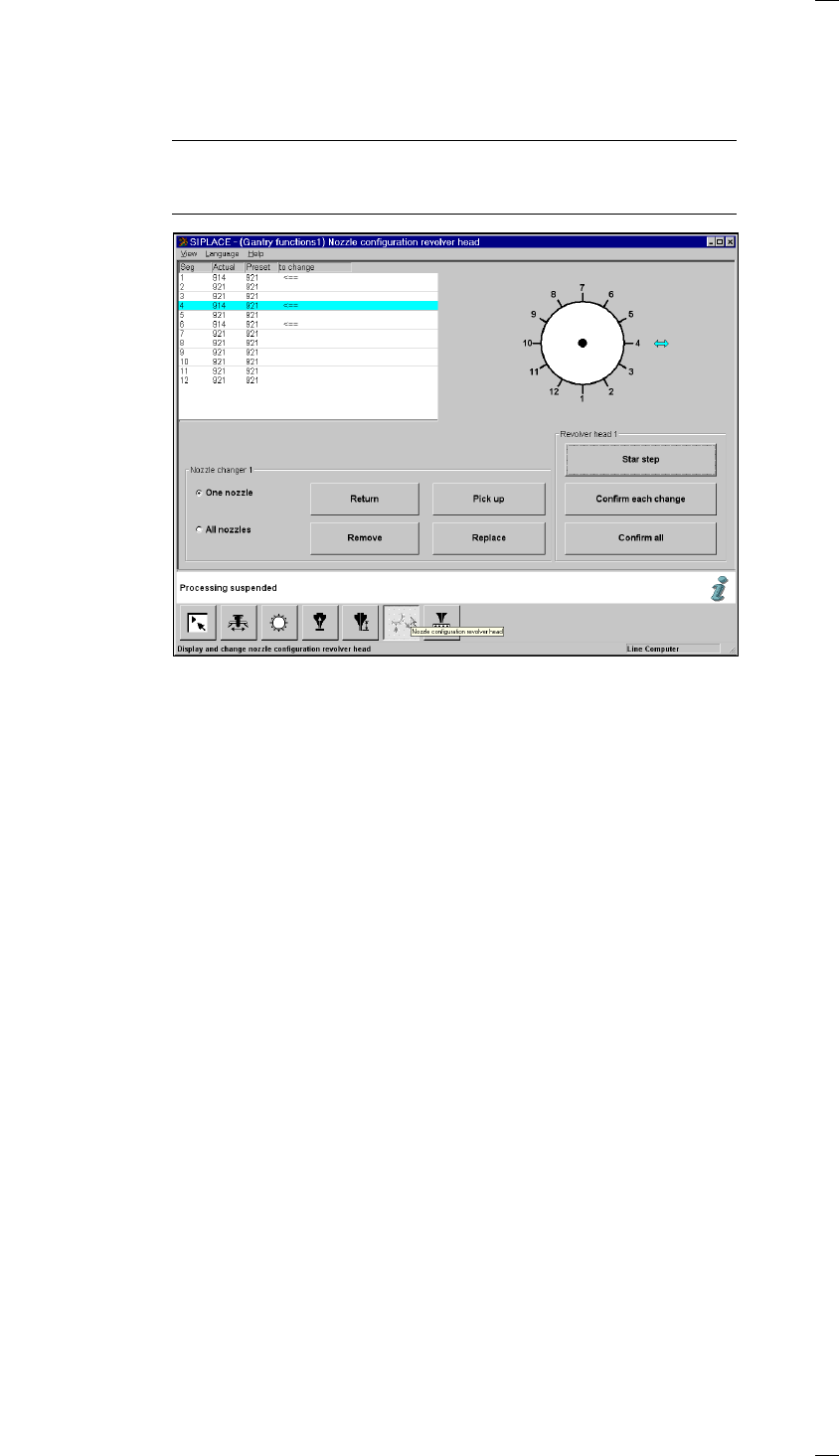 Pick up all nozzles The revolver head picks up all nozzles from the nozzle magazine.