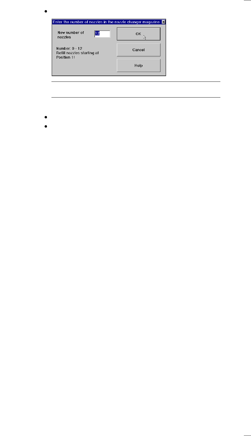 38 Click on OK to exec ute the functio n. Return all no zzles All nozzles are return ed to the ma gazine o f the nozzle ch anger . Pick up all n ozzles The revolve r head picks up all noz zles from the nozzle m agazine. …