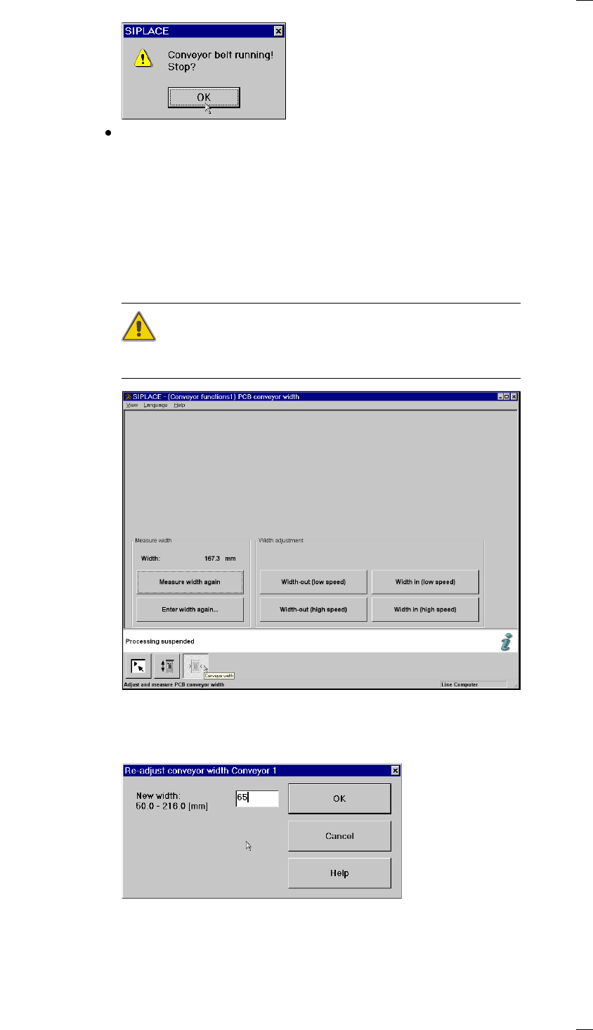 Make sure there are no boards on the conveyor belts when you adjust the