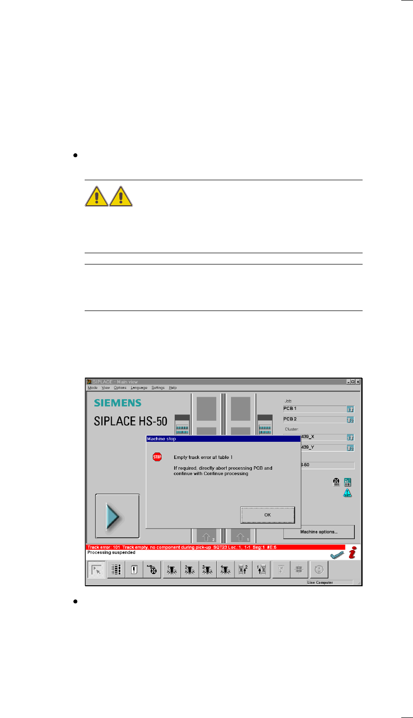 43 T r oubleshooting If errors occurs a t the placeme nt machi ne, such as – track errors – machine err ors – tran sp ort e rro rs – fiducial erro rs – nozzle configura tion errors or – PCB bar co de readin g errors it w…
