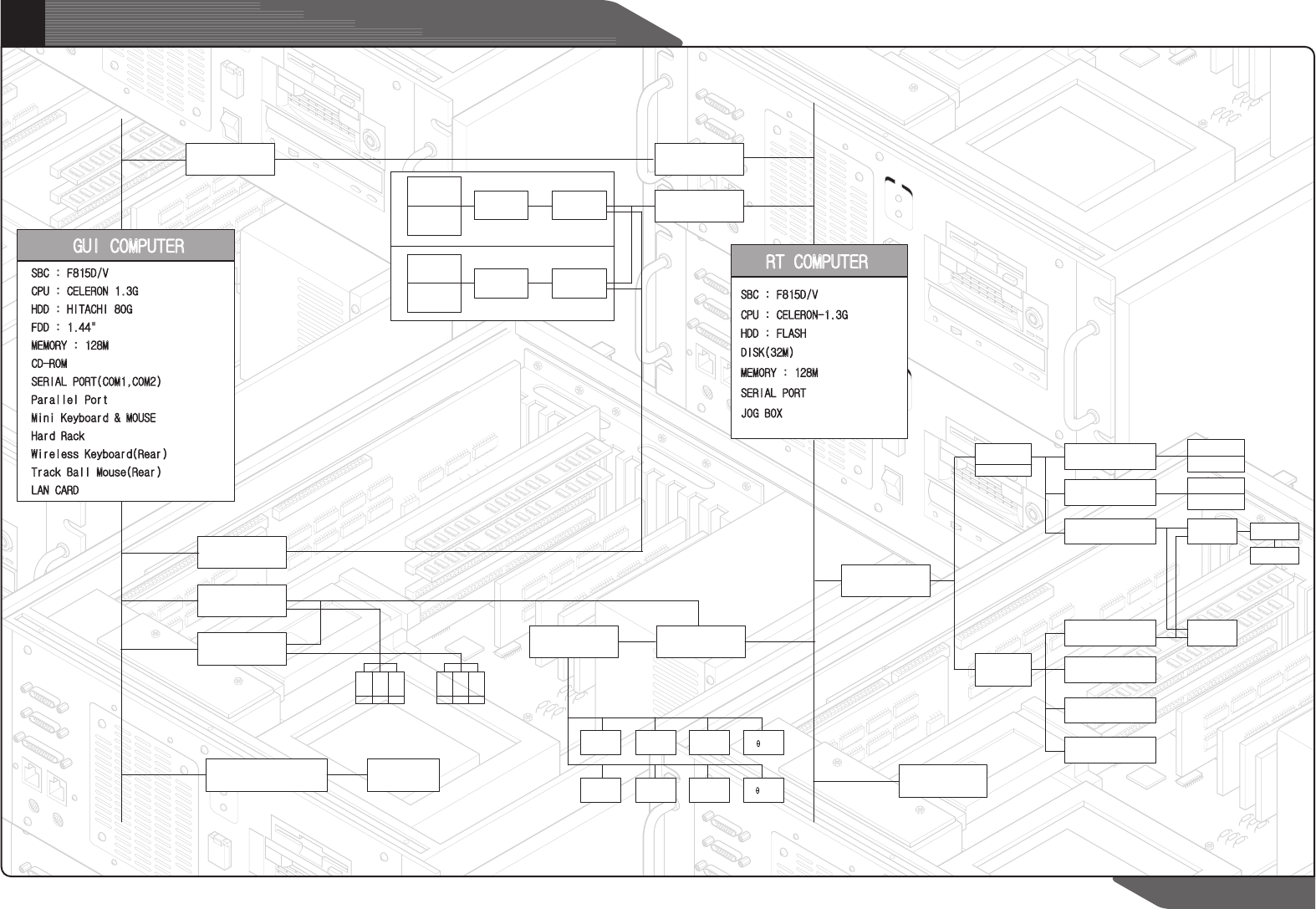 PCI Bus ISA Bus HEAD I/F FRONT RT COMPUTER SMART CARD X1 AMP DPRAM MASTER ISA Bus Ext Cable (HP-TH-DP-01,HP-TH-DP-02) RS-485(1.2Mbps) SBC : F815D/V CPU : CELERON 1.3G HDD : HITACHI 80G FDD : 1.44" MEMORY : 128M CD-R…
