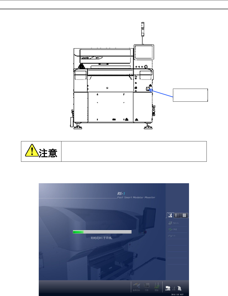 (3) 初始设置结束后会显示主画面,在画面上显示返回原点画面。
