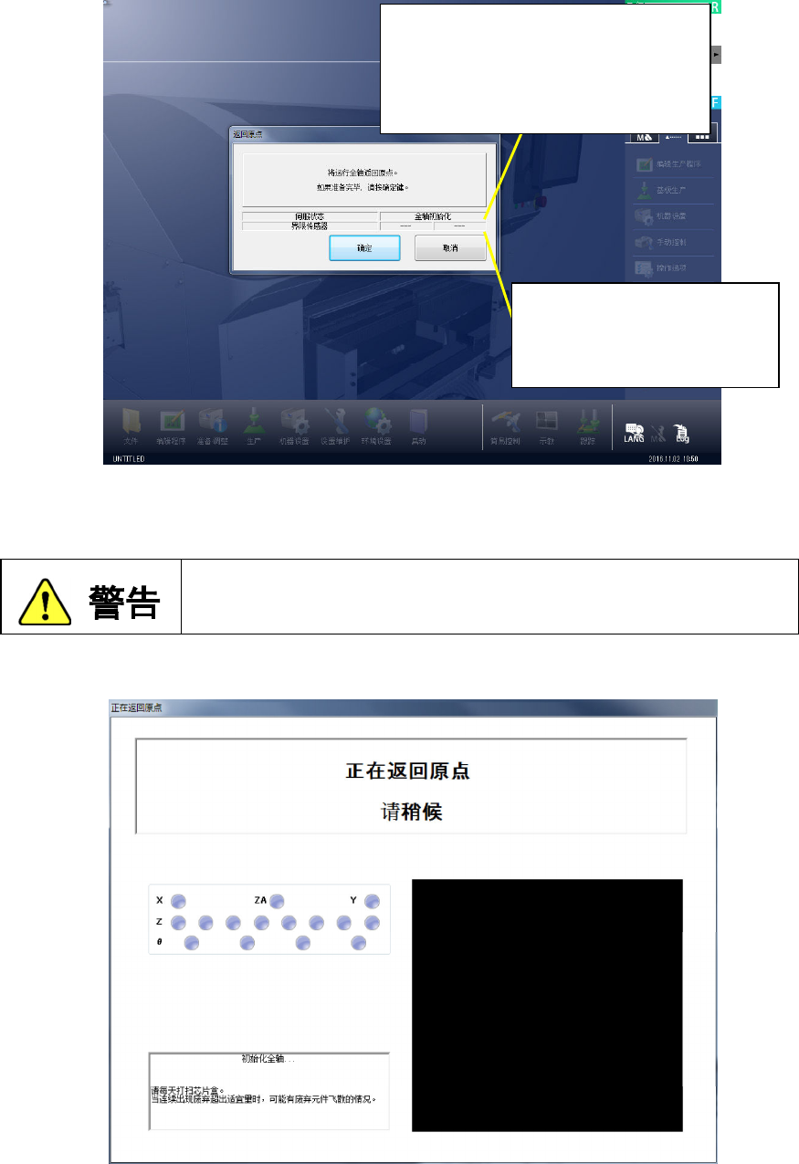(4)执行中,会显示返回原点画面。