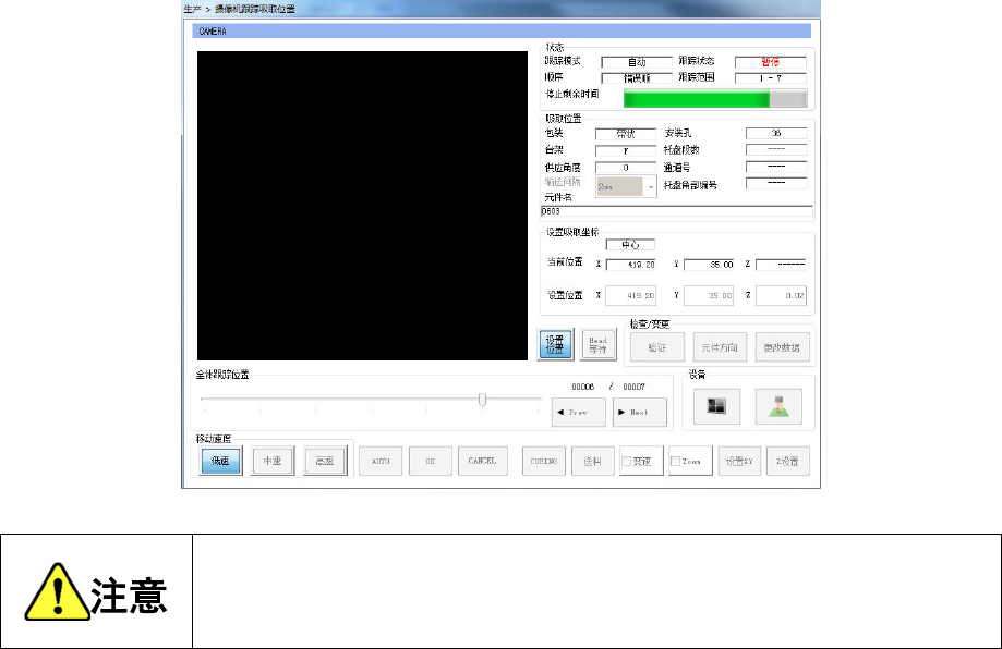 显示以下的摄像机跟踪吸取位置画面。