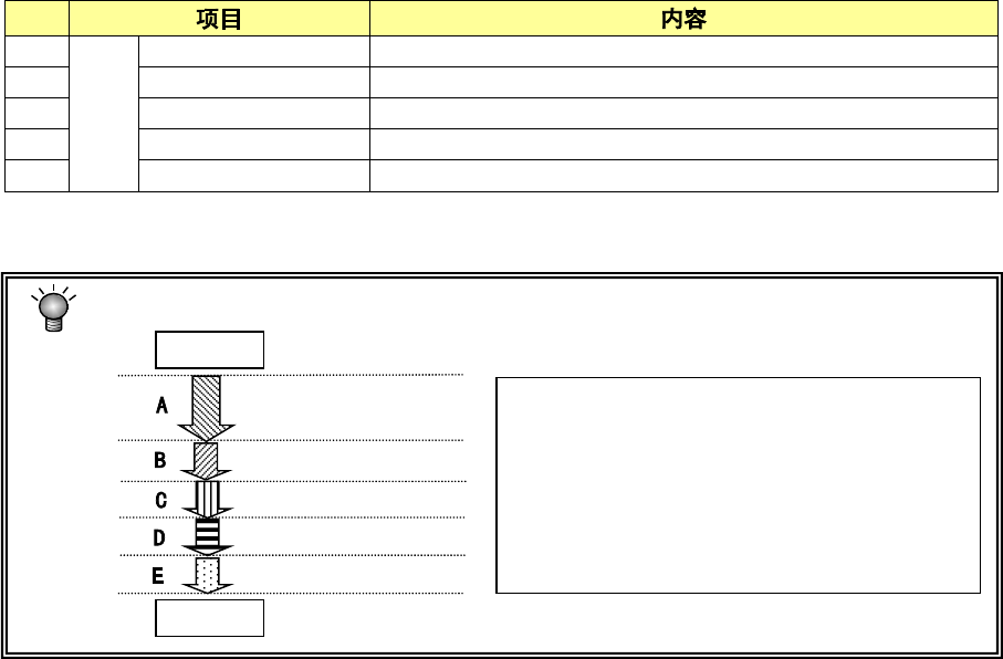 第 1 部 基本篇 第 2 章 生产 2-55 显示内容项 目:变更 管理信息的显示 内容 No. 1 显示 内容 综合 显示综合管理 信息。 2 Head 显示每 1 个 Head 的生产 管理信息。 3 供应 显示每 1 个供 应位置的生 产管理信息。 4 吸取率 显示每 1 个供 应位置的吸 取率排序。 5 删除 删除生产管理 信息。 生产开始到结束 的阶段区分 及主要定义如下。 l 运行时间 → A l 停止时间合计 → C+D…