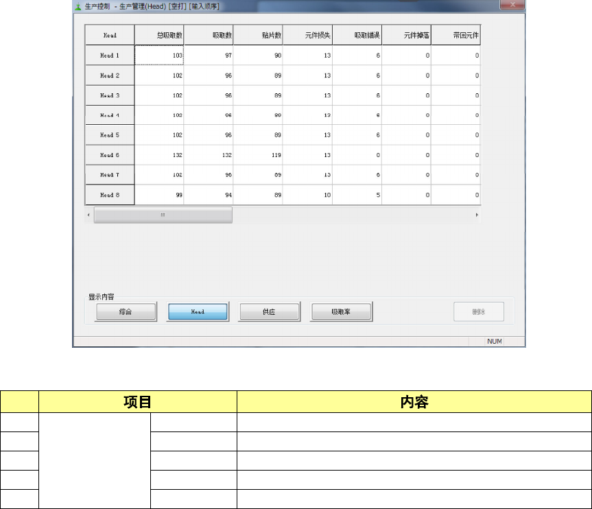 显示每个Head的生产管理信息。