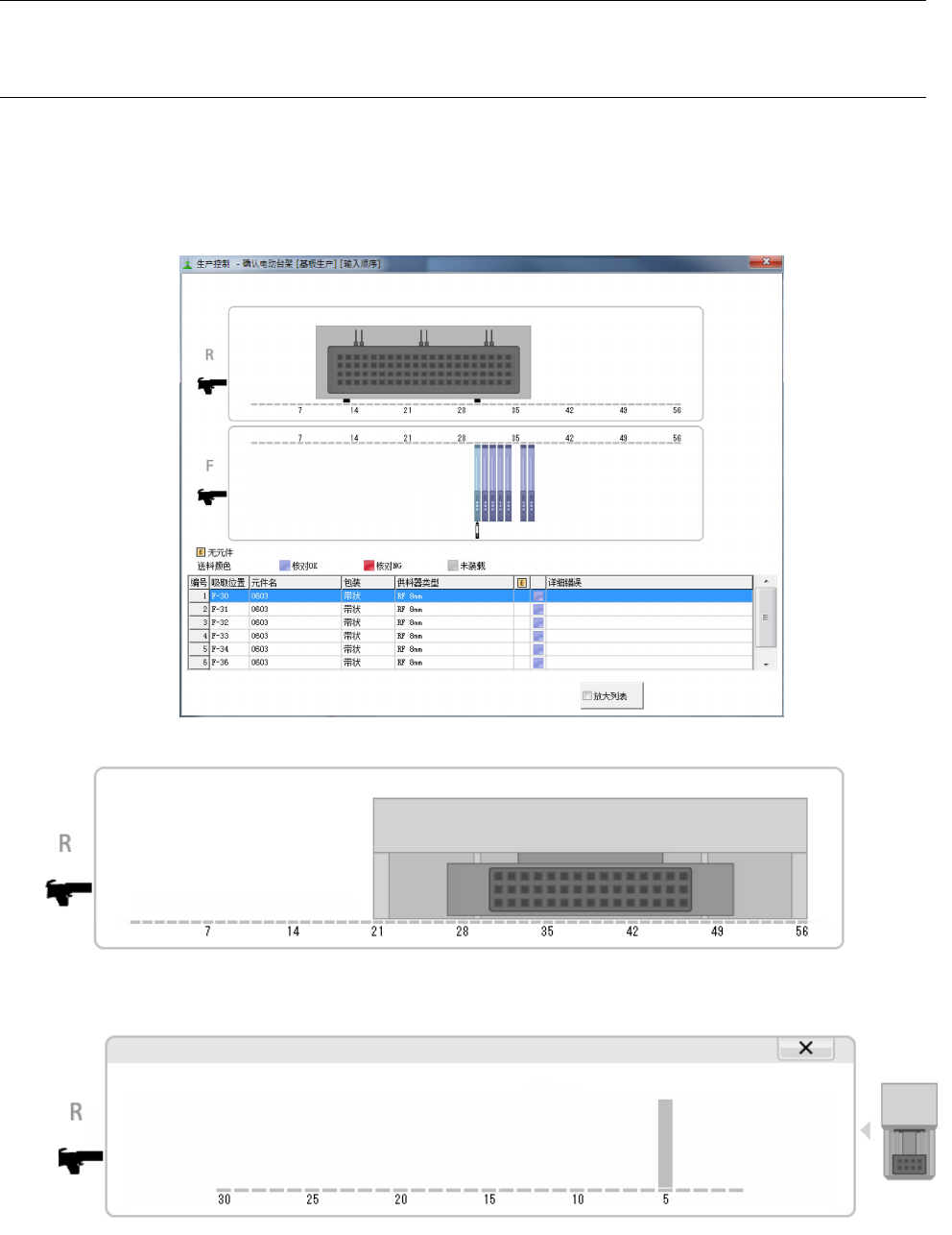 本项中,对当前生产程序之吸取数据中的电动式供料器,显示元件错配检测。