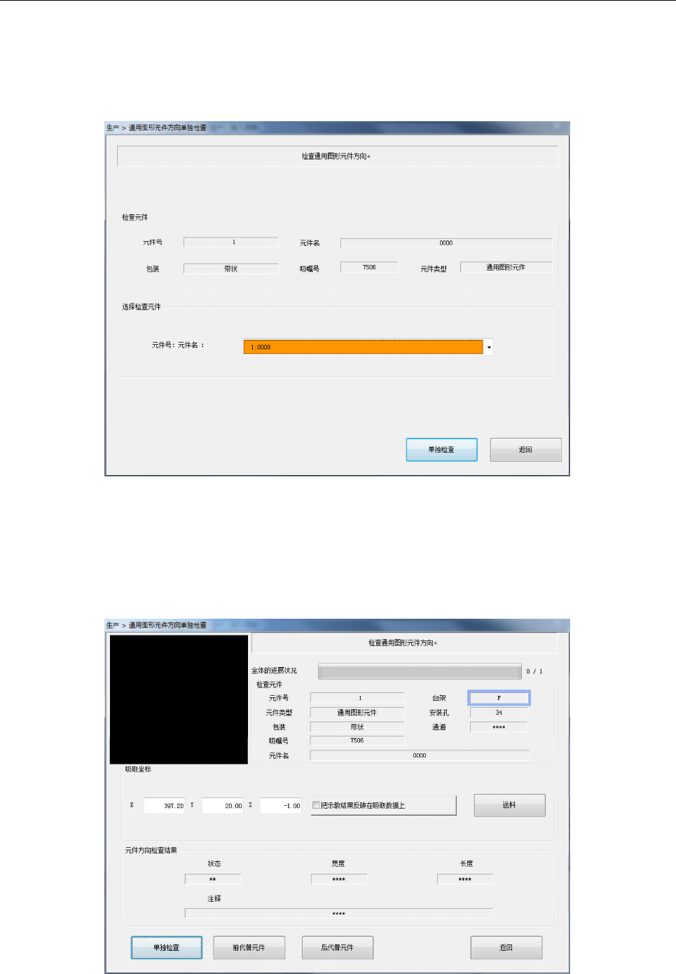 显示元件的内容。元件名的组合框内显示通用图像元件方向检查对象元件一览,在此选择要执行