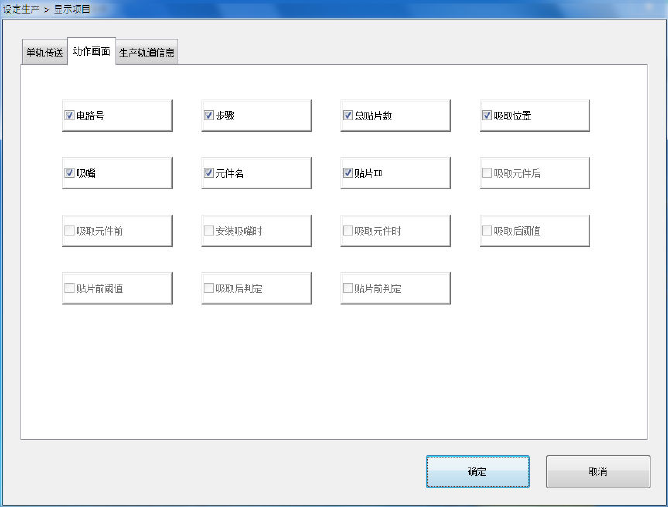 可在「单轨传送」选项卡中设置单轨生产中生产状态画面项目的显示/隐藏。