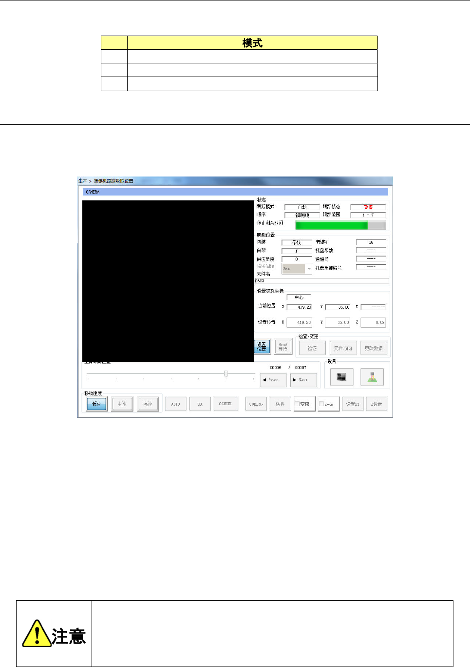 按<START>开关后,会再开始摄像机跟踪贴片位置的自动输送模式。