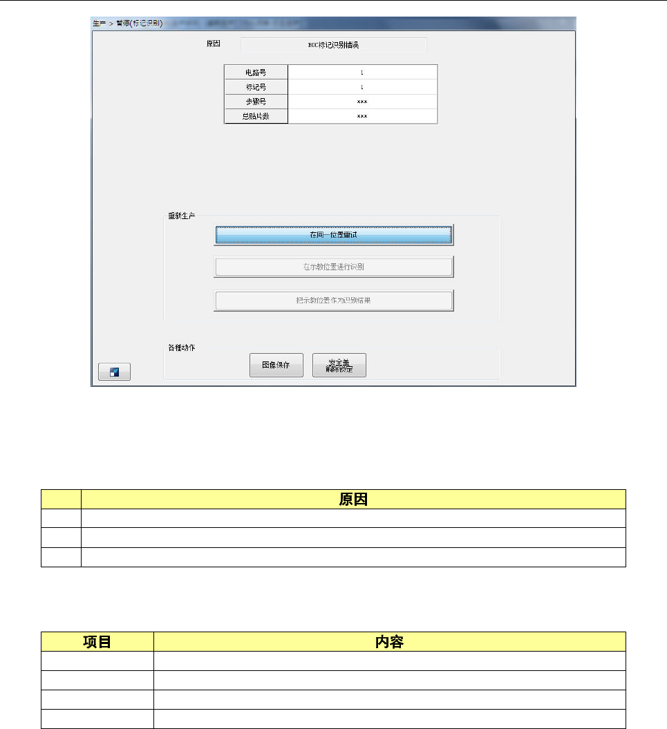 如果在 BOC 标记、基准领域标记的识别中发生识别错误,则会暂停生产并显示下图。
