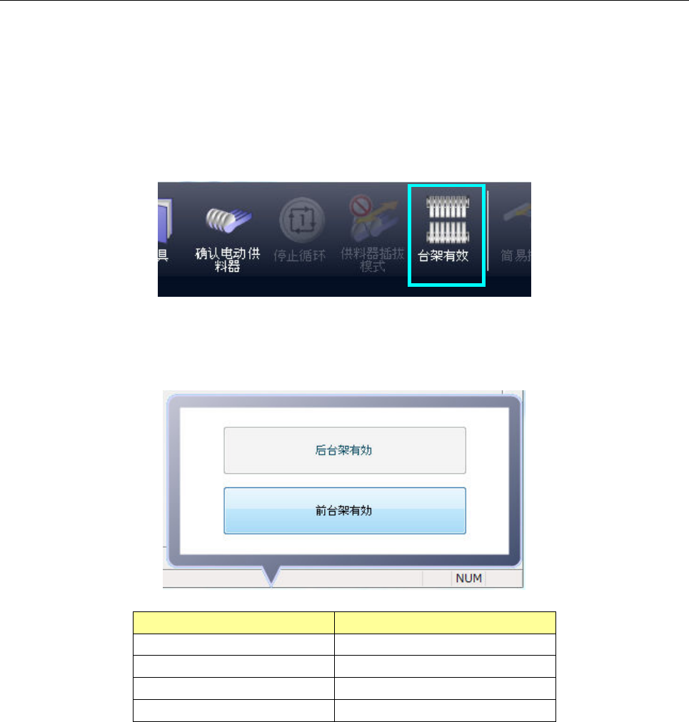 按下供料器台架有效按钮,则显示子菜单。在子菜单中显示现在的供料器台架有效状态。