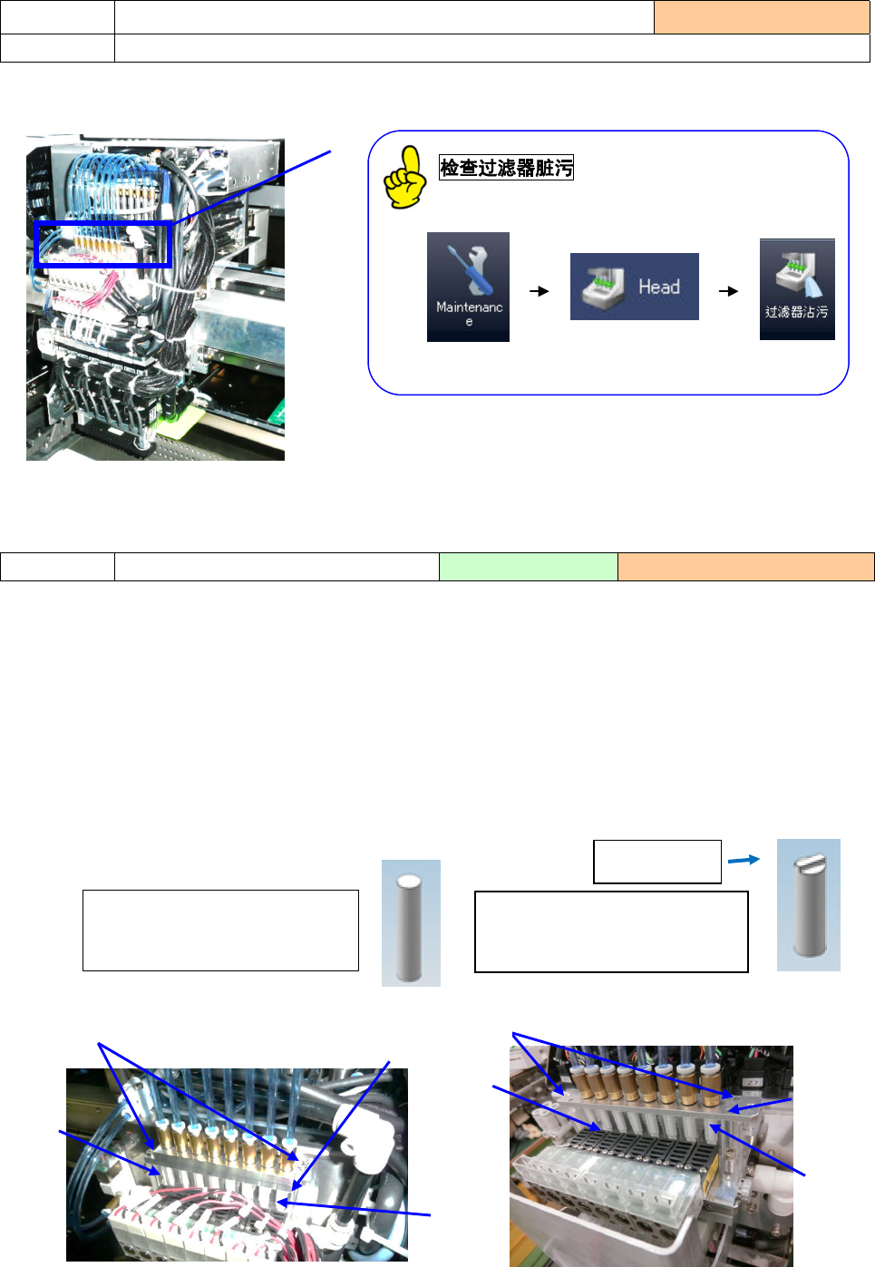 1) 请目检确认 Head 单元正面部位过滤器箱内的「空气过滤器①」没有脏污。