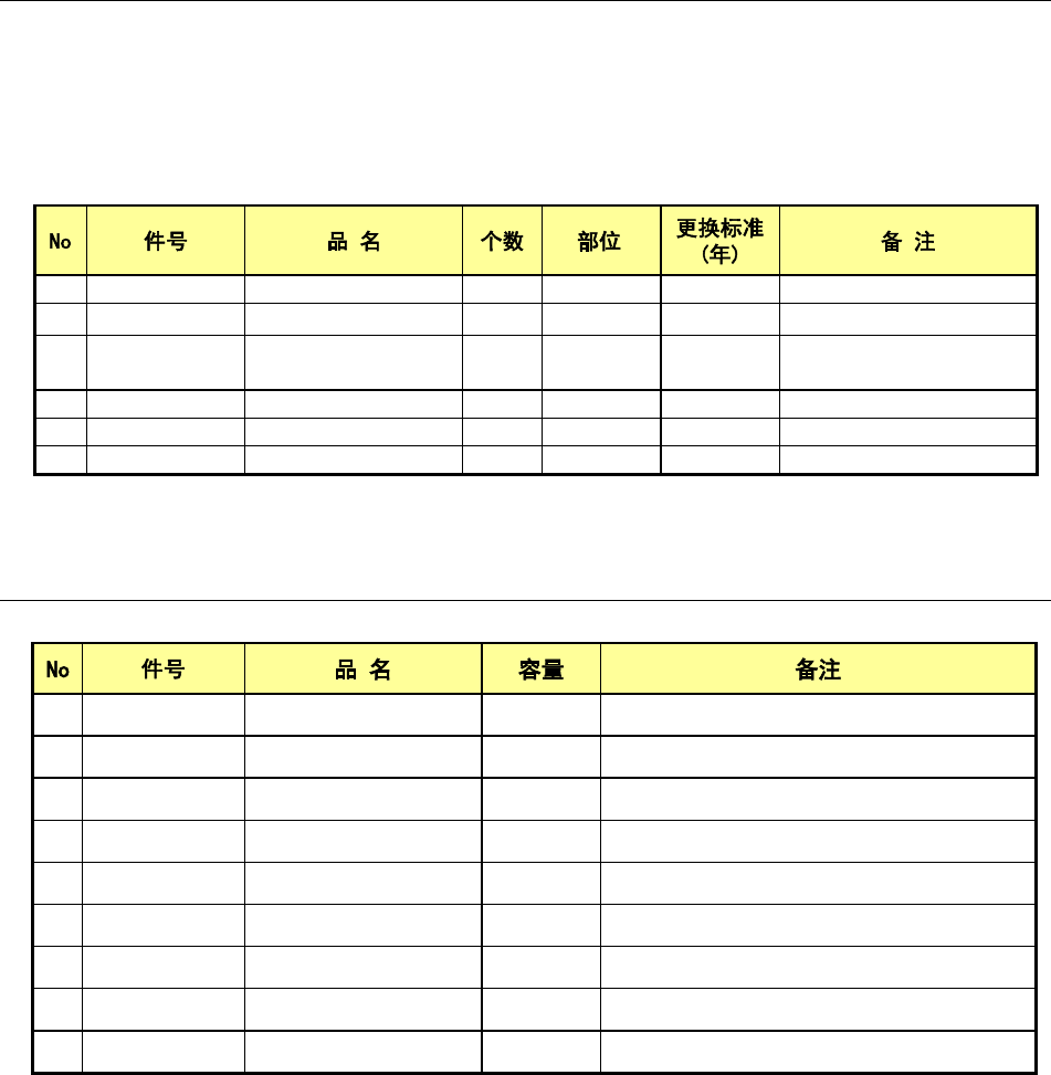 除消耗品之外,因磨损、老化等原因,必须定期更换的零部件列表如下。