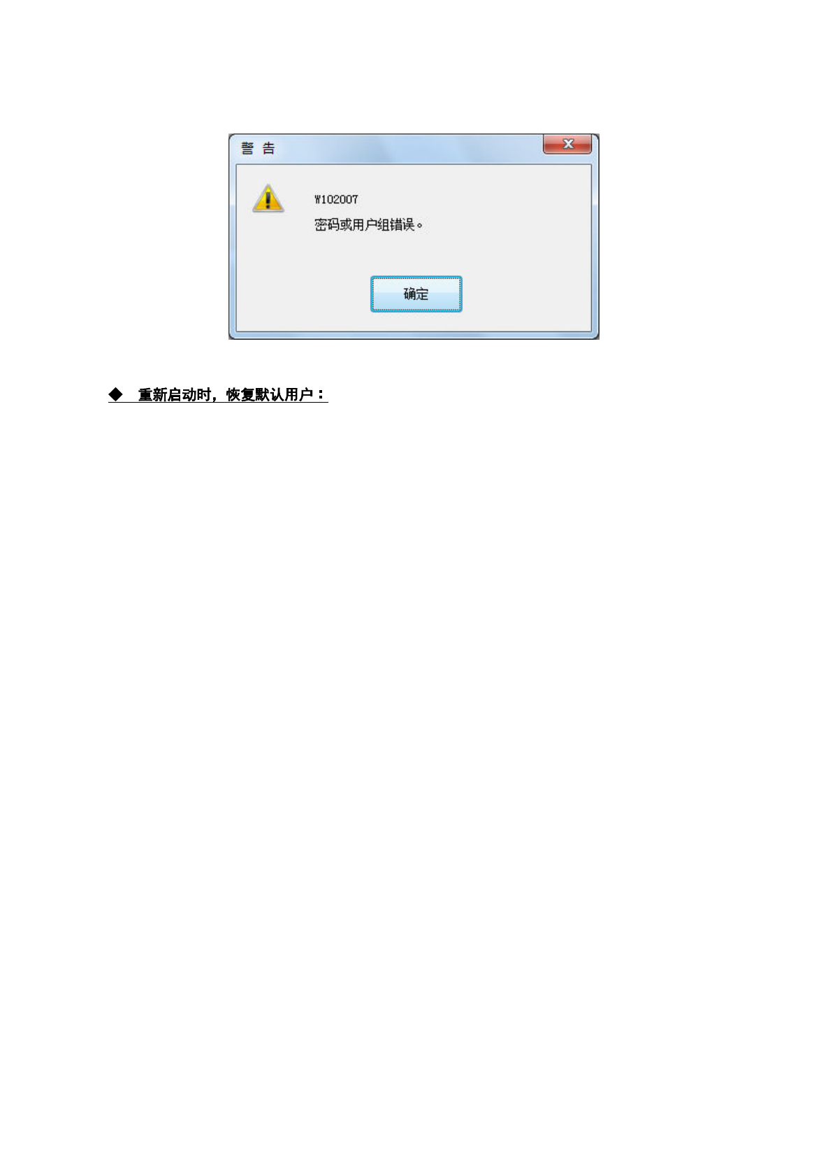 如果用户组与密码不一致,会显示以下提示信息。