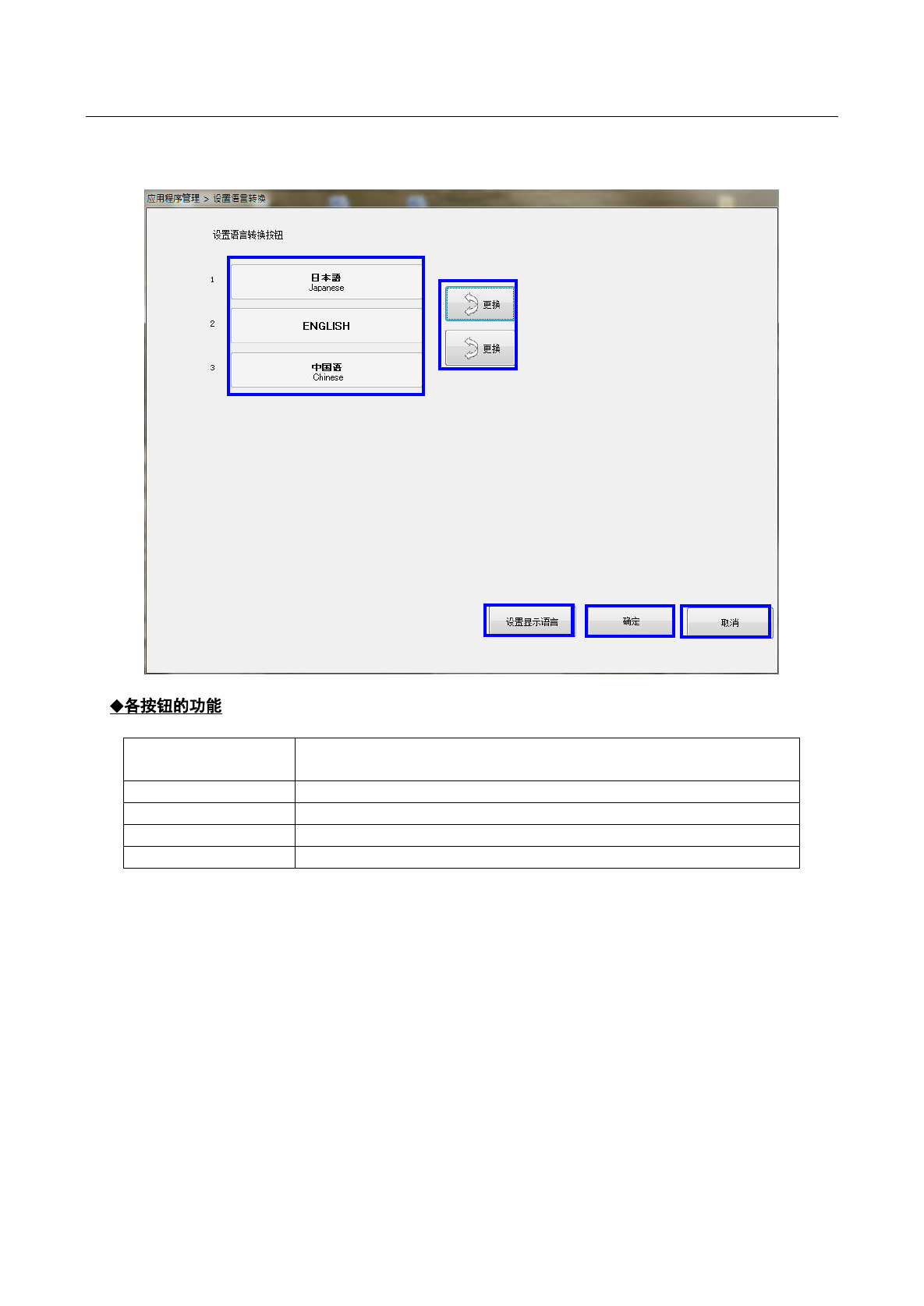 ②更换 可以改变语言转换菜单的显示顺序。