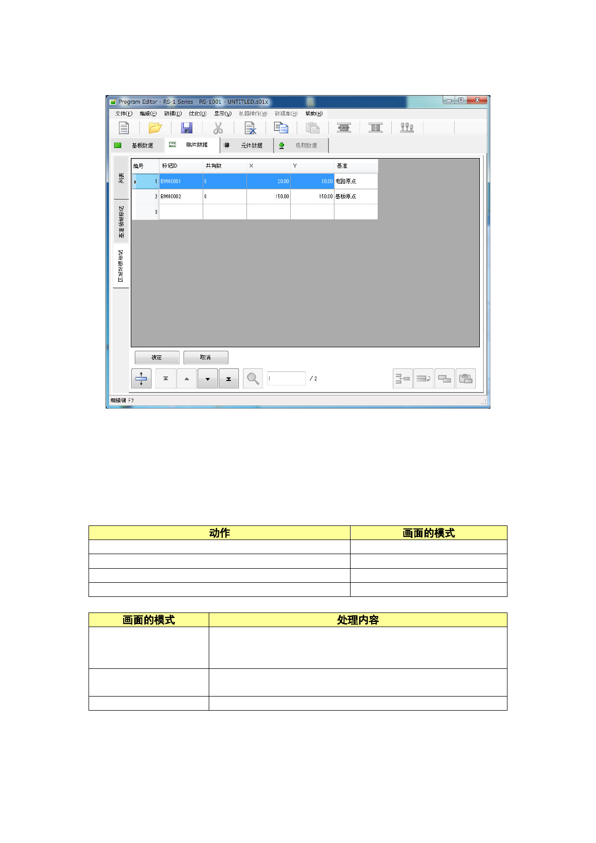 要注册新的标记时,使光标移动到未输入的行,输入标记的 X 坐标、Y 坐标、基准。