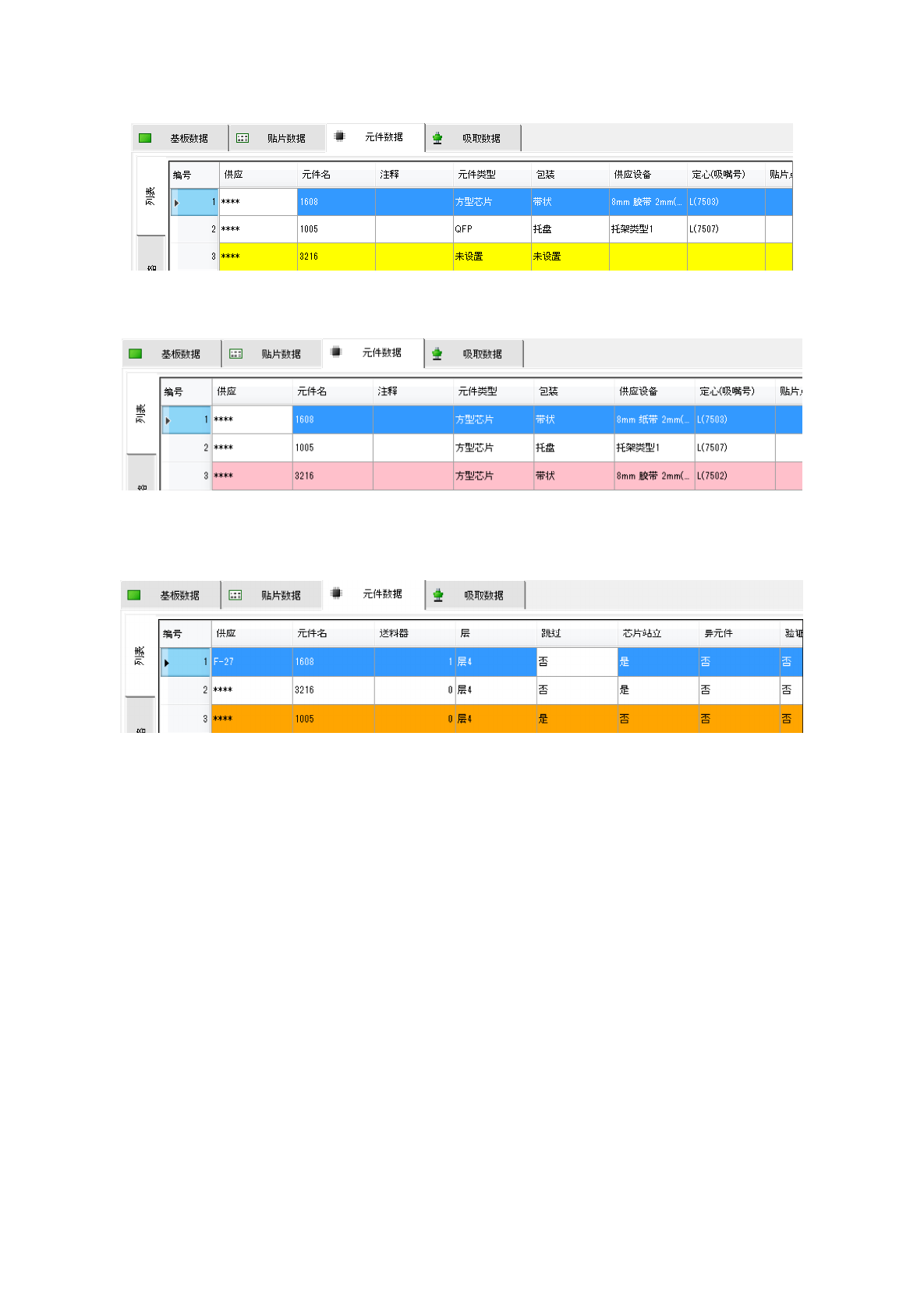 「元件数据」,是针对在「贴片数据」中输入的“元件名称”输入详细的信息数据。