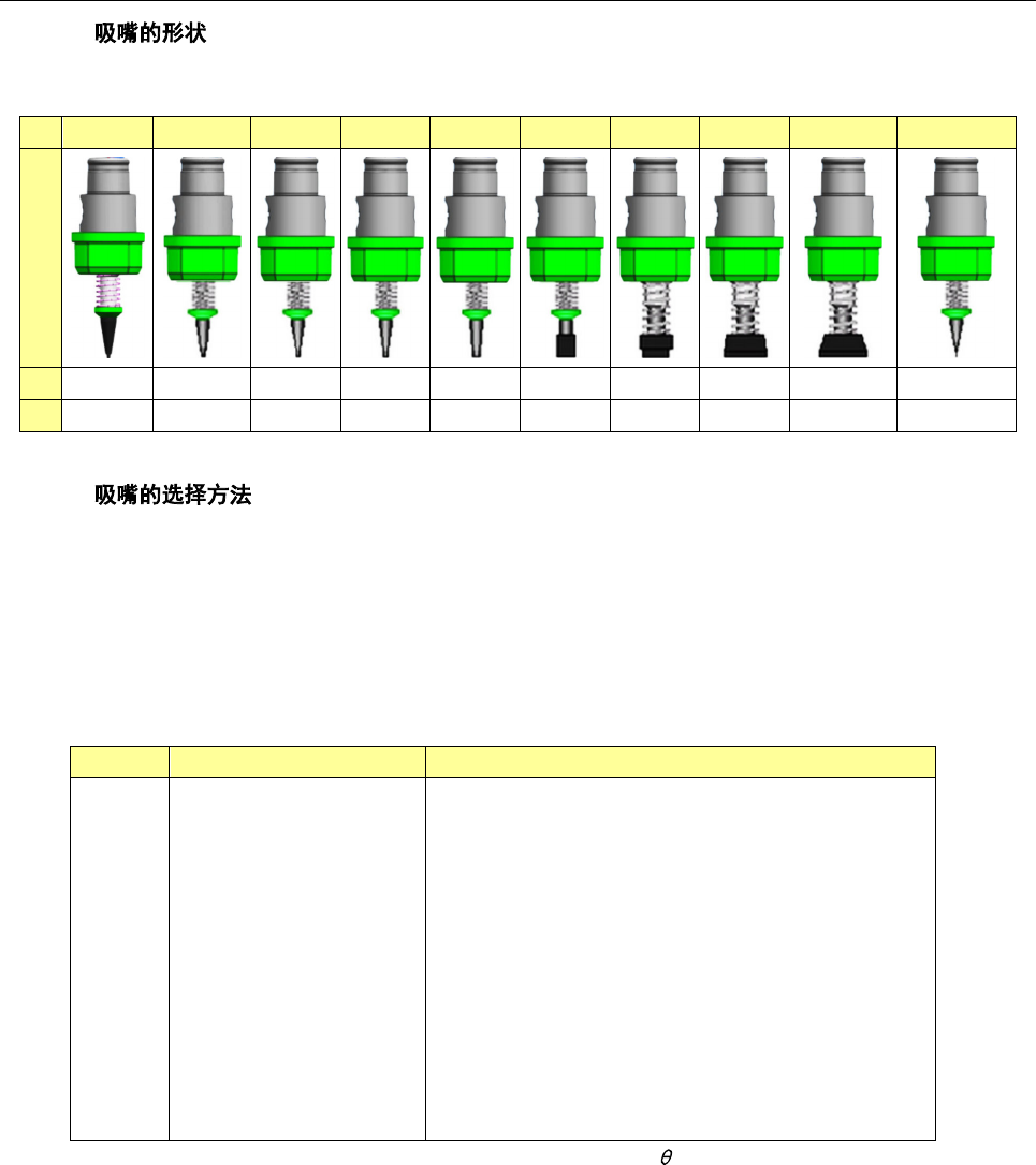 主要用途元件的吸嘴编号如下表所示。为提高精确性,请根据贴片元件吸取面的最小宽度尺寸选