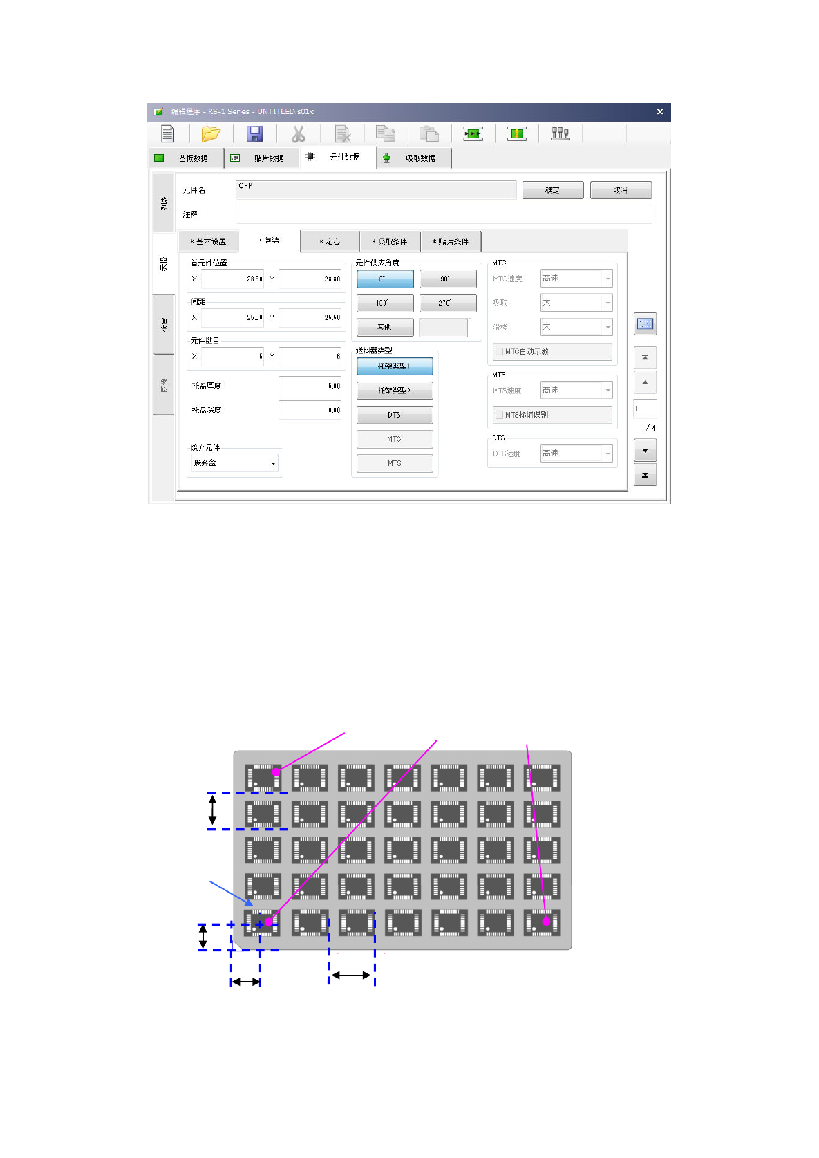 托盘元件的首元件中心位置尺寸(X、Y) : 输入托盘外形起的尺寸。