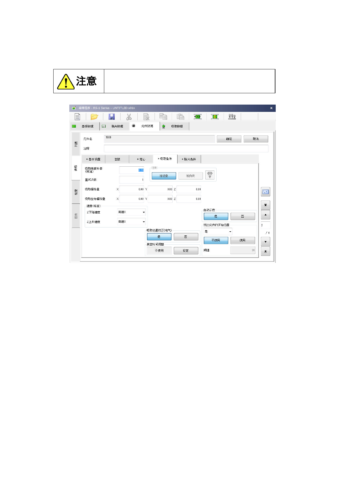 当设置为“0”时,因元件尺寸(高度)偏差等的影响,吸嘴到达不了元件,无法吸取元件或发生芯片