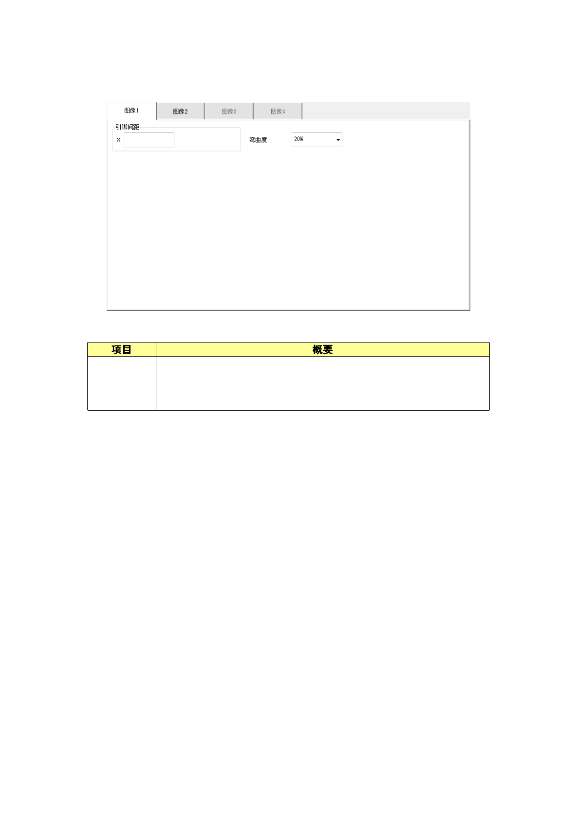 在「图像 1」选项卡中设置引脚间距及弯曲度。