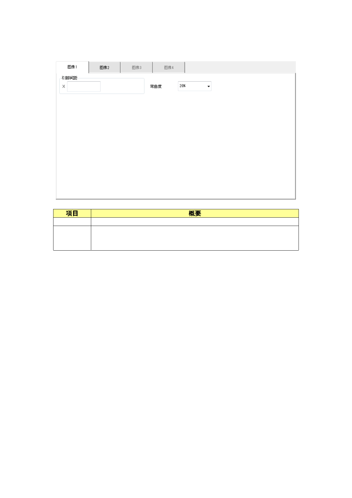 在「图像 1」选项卡中设置引脚间距及弯曲度。