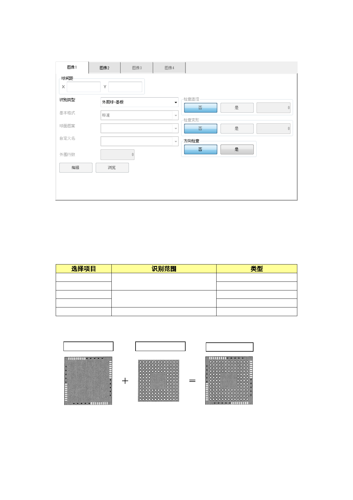 识别方式为「所有球面-基板」「所有球面-陶瓷」时,可设置是否进行球面检查和判定值。