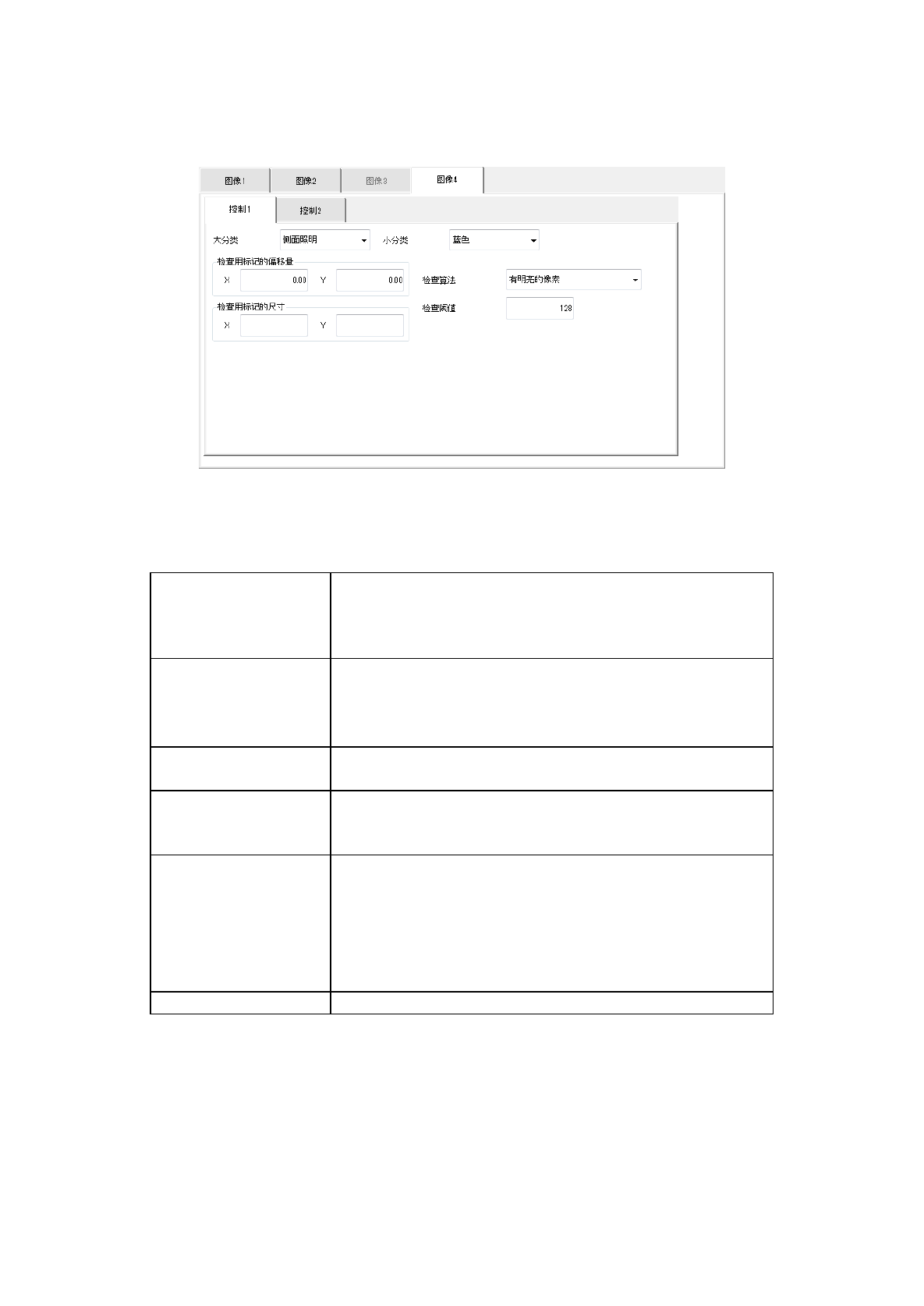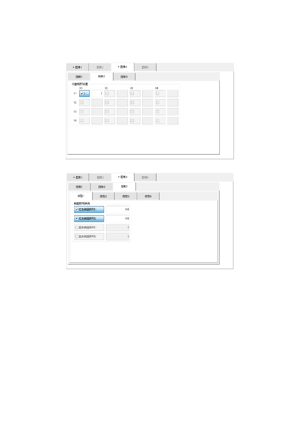 [控制 1]选项卡是对识别的设定,[控制 2]选项卡是设定照明详细的选项卡。