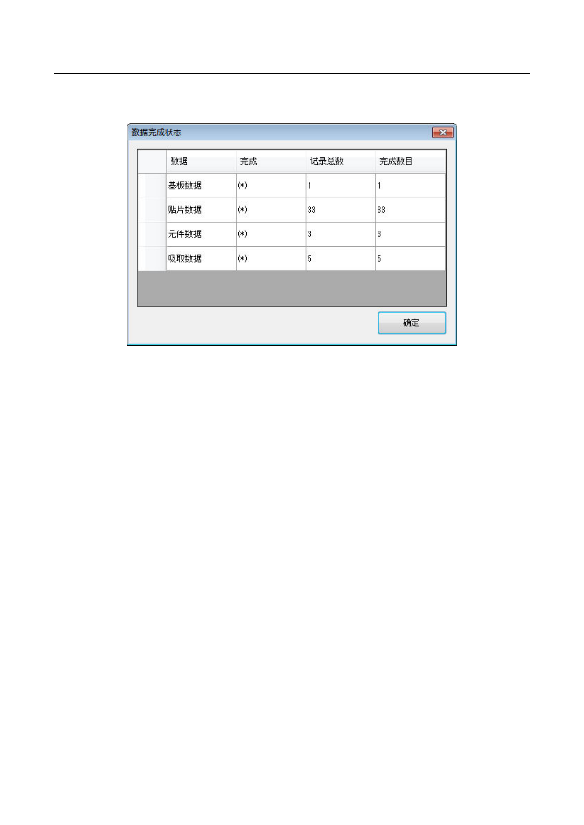 从菜单中选择[数据]-[数据完成状态]后,会显示如下画面。
