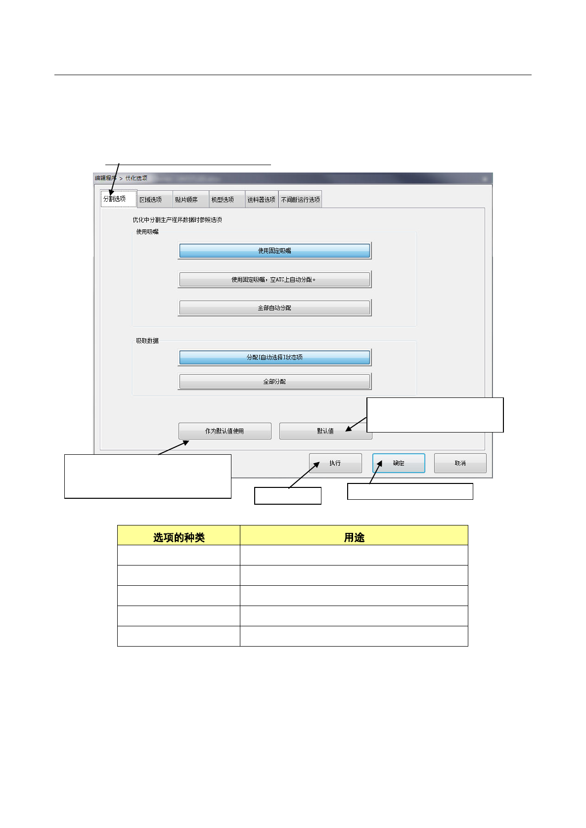 分割选项 设置分配吸嘴及吸取数据时的优化参照选项。