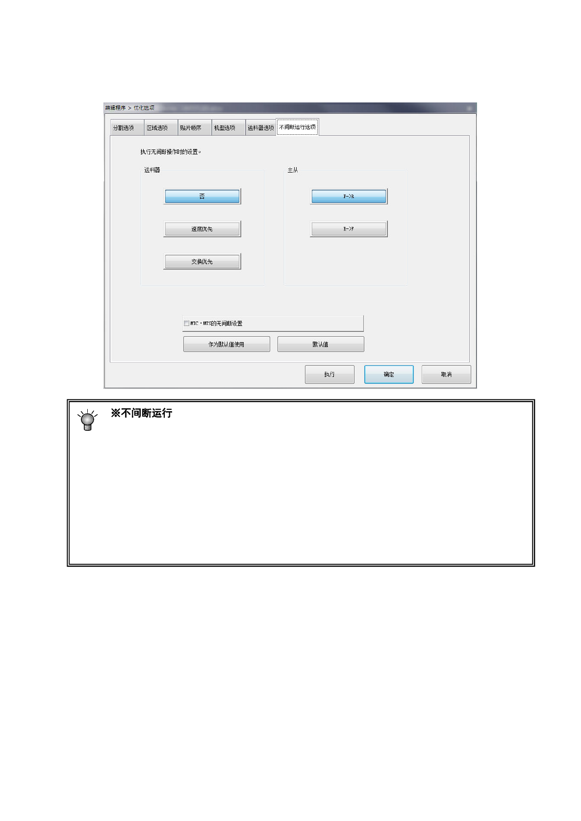 使用对应无间断生产的 MTC(TR6D)及 MTS(TR5D)时,设定是否实施不间断运行。