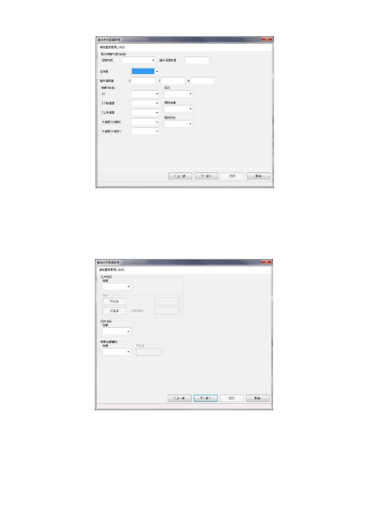 显示元件数据的贴片条件选项卡的内容。