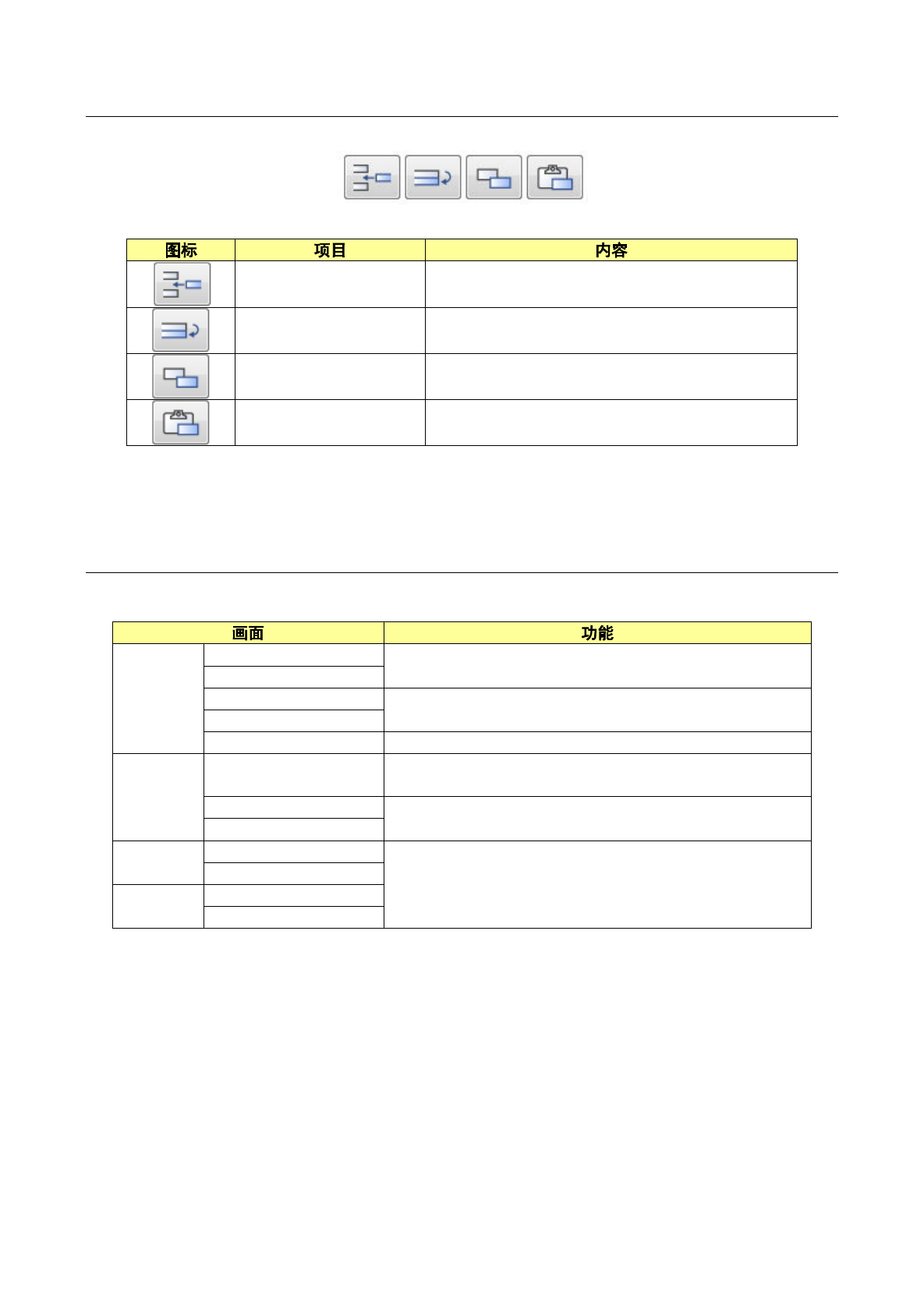 第 1 部 基本篇 第 4 章 制作生产程序 4-180 4-5-3 列表画面的功能 此功能是制 作程序的 辅助功能。对列 表画面的右下部 的列表画面用编 辑按钮进行配 置 。 插入行 在选择的行位置上插 入空白记录。 复制行 将 选 择 行 的内 容插 入 复 制的 记 录。 但也 有 未复 制的 内容。 单元格 ・ 复 制 将选择 范围反转 显示的单元 格保存到内存缓冲 区。 单元格 ・ 粘 贴 将 「单元格 ・ 复制 」 命令保存…