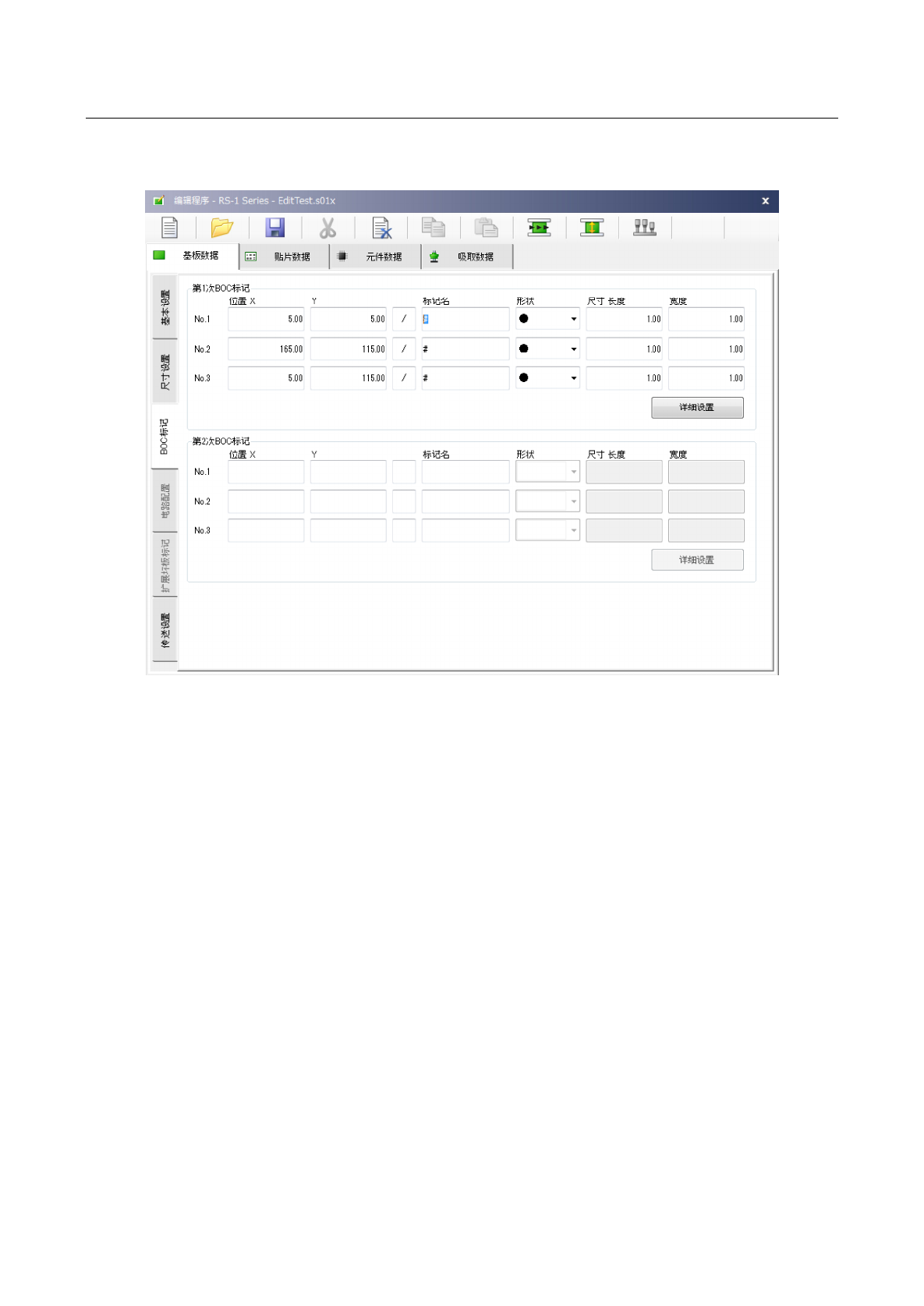 栏的[示教]。但必须预先在编辑程序中输入标记的 XY 坐标。
