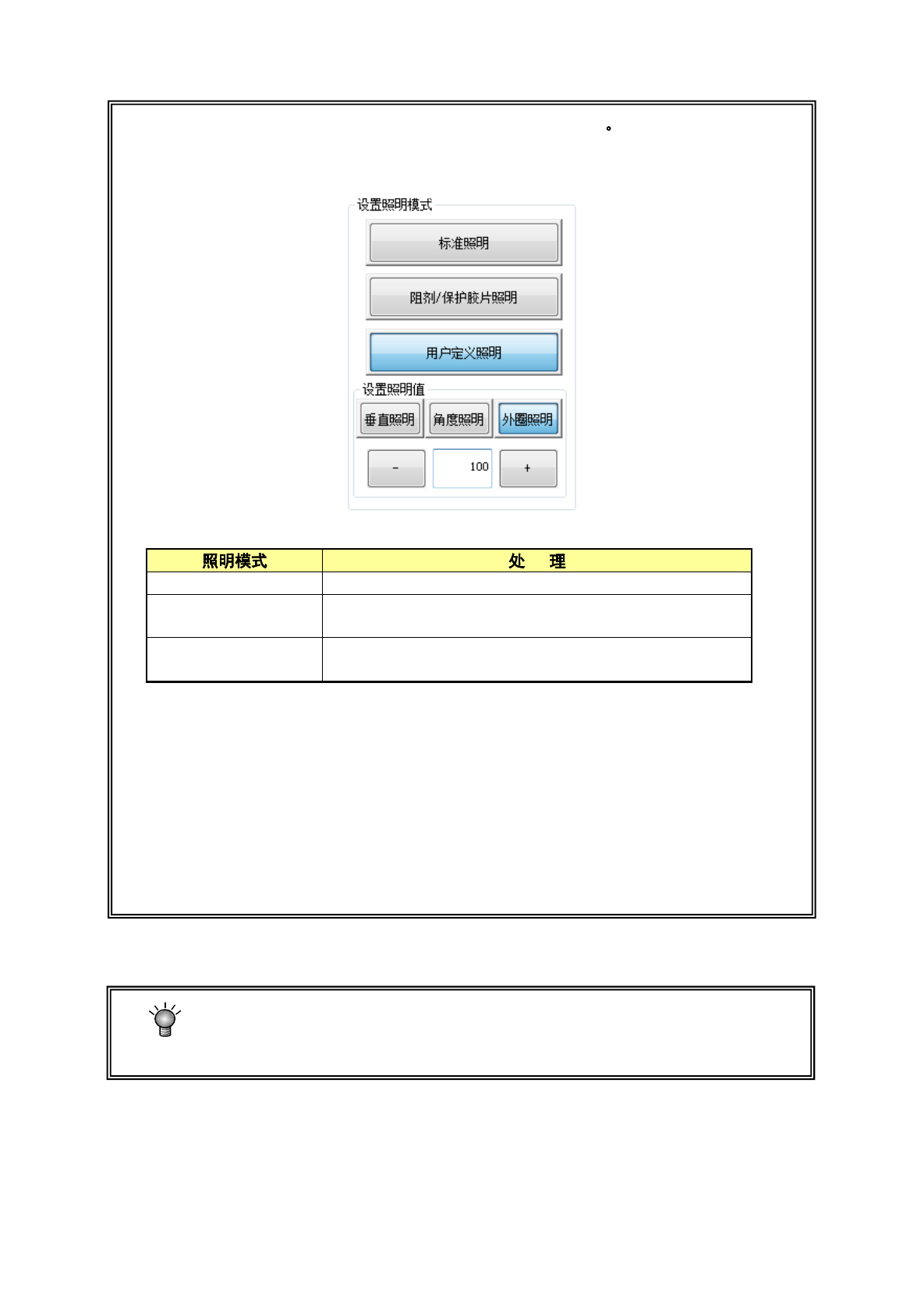 请选择[角度照明]、[垂直照明]或[外圈照明]按钮,在编辑框里输入数值,
