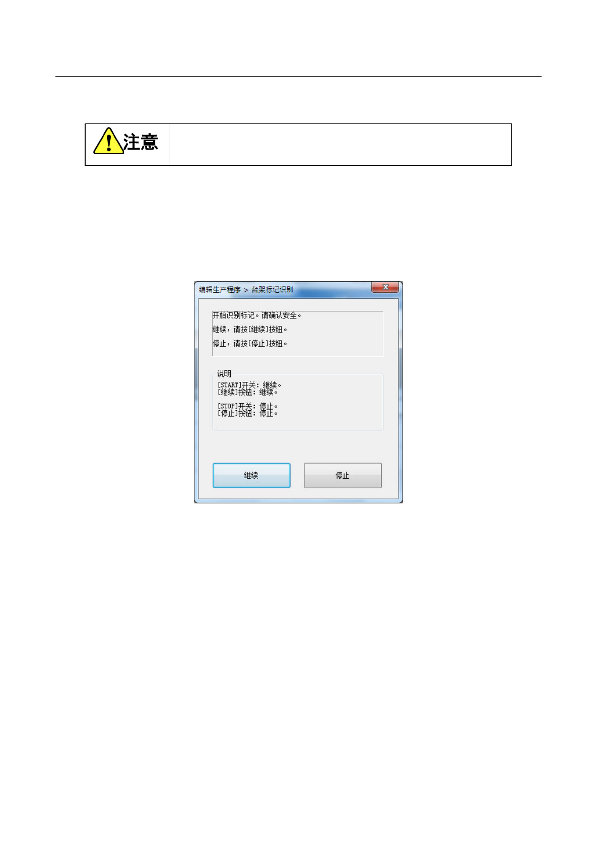 确认安全后,请按下<START>开关或[继续]按钮。