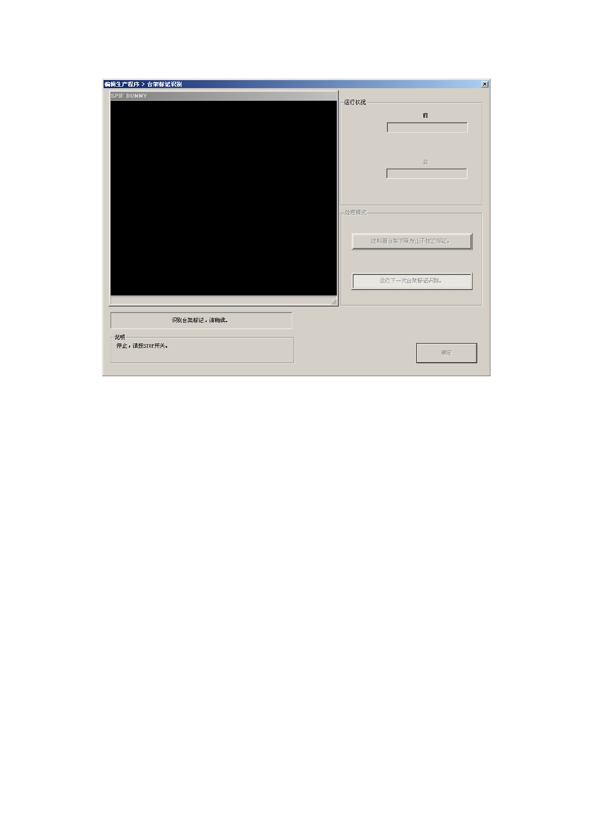 当识别台架标记失败,画面的[说明]栏显示提示信息时,可以选择[处理模式]的项目。