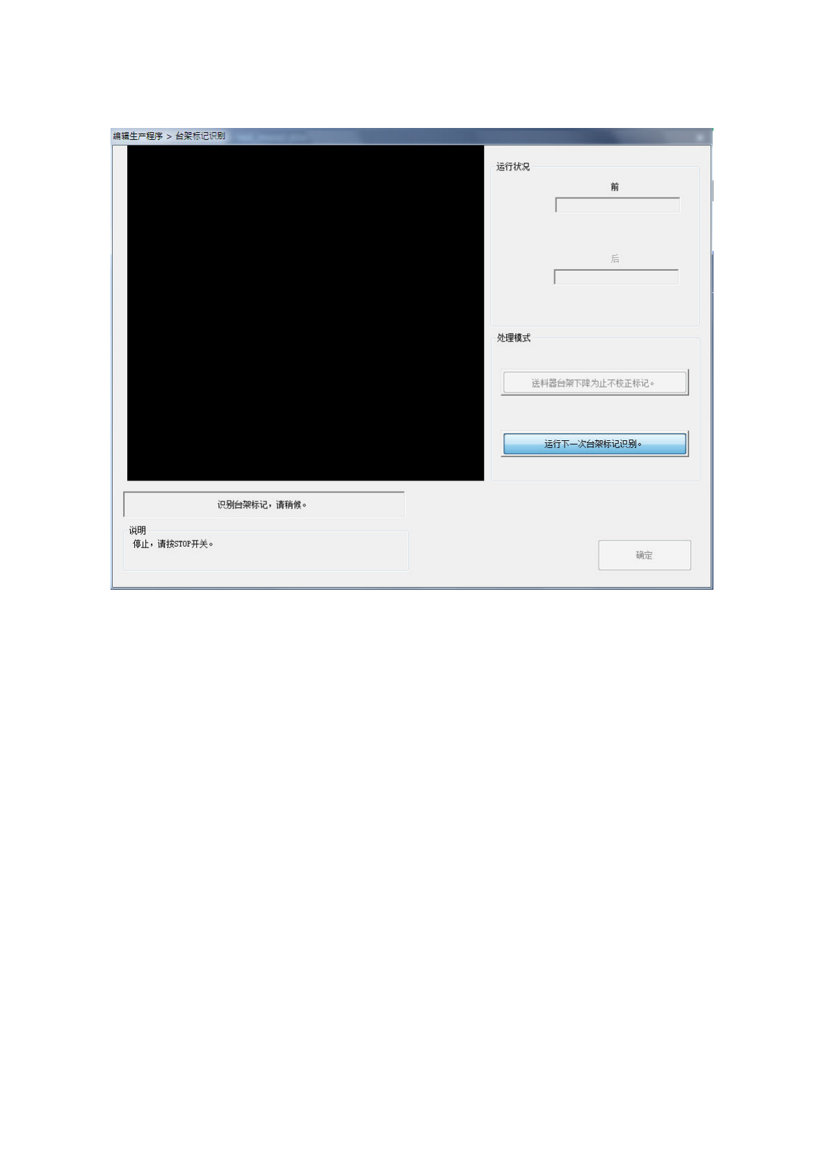 下一次需要校正台架标记时,必须再次进行识别操作。