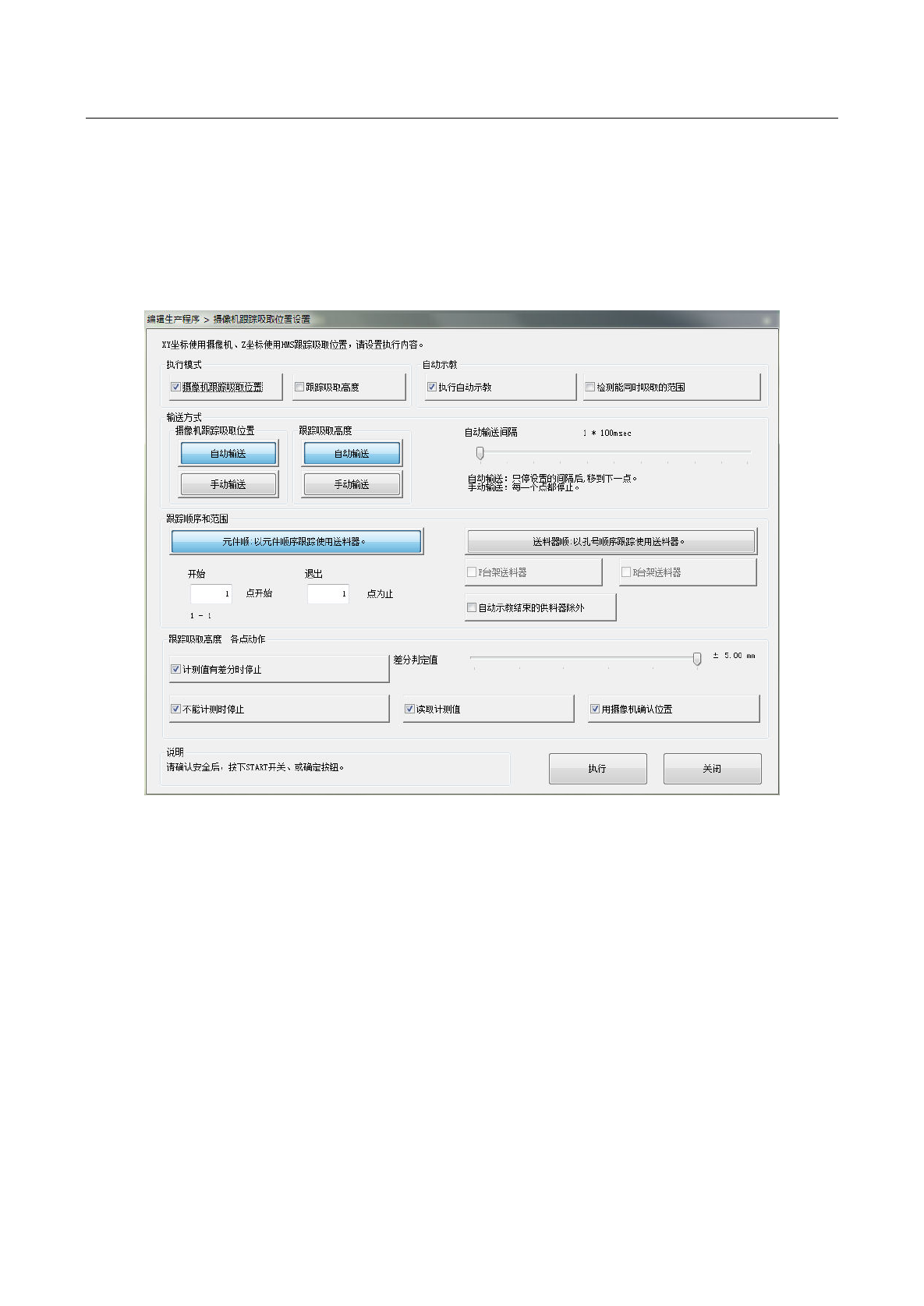 从菜单中选择[机器操作]-[吸取高度],在勾选「跟踪吸取高度」的状态下,会显示上述画面。